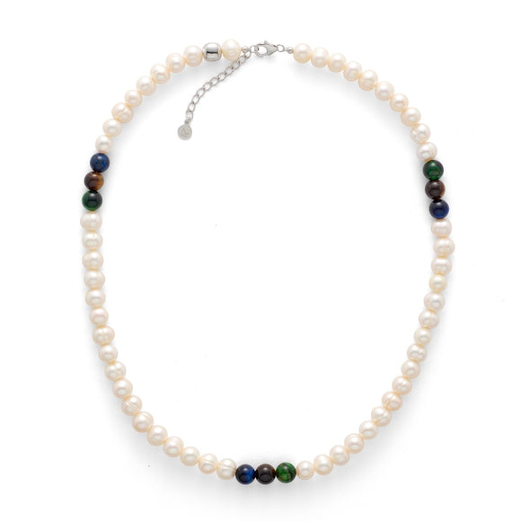 Pearl Necklace with Mixed Tiger Eye 8mm