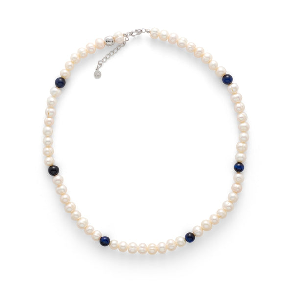 Pearl Necklace with Blue Tiger Eye 8mm