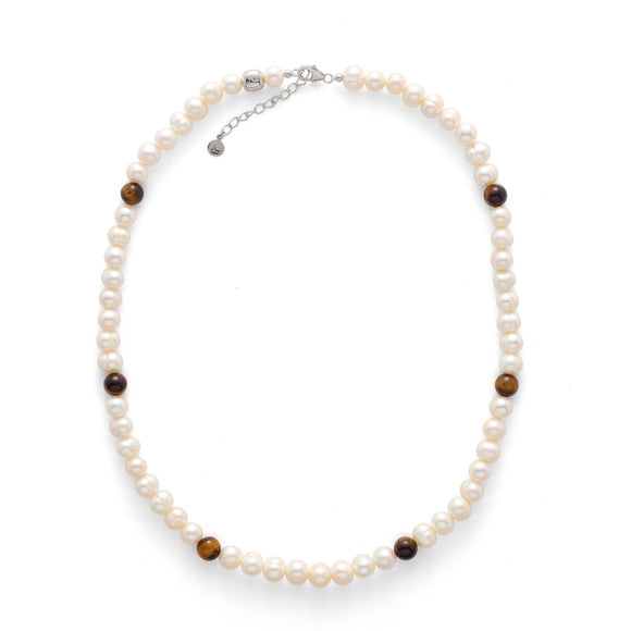 Pearl Necklace with Mixed Tiger Eye 8mm